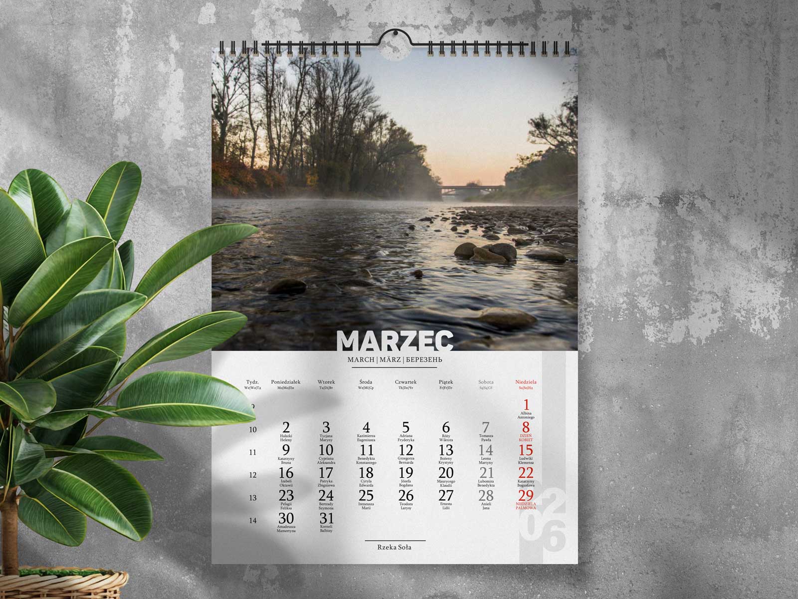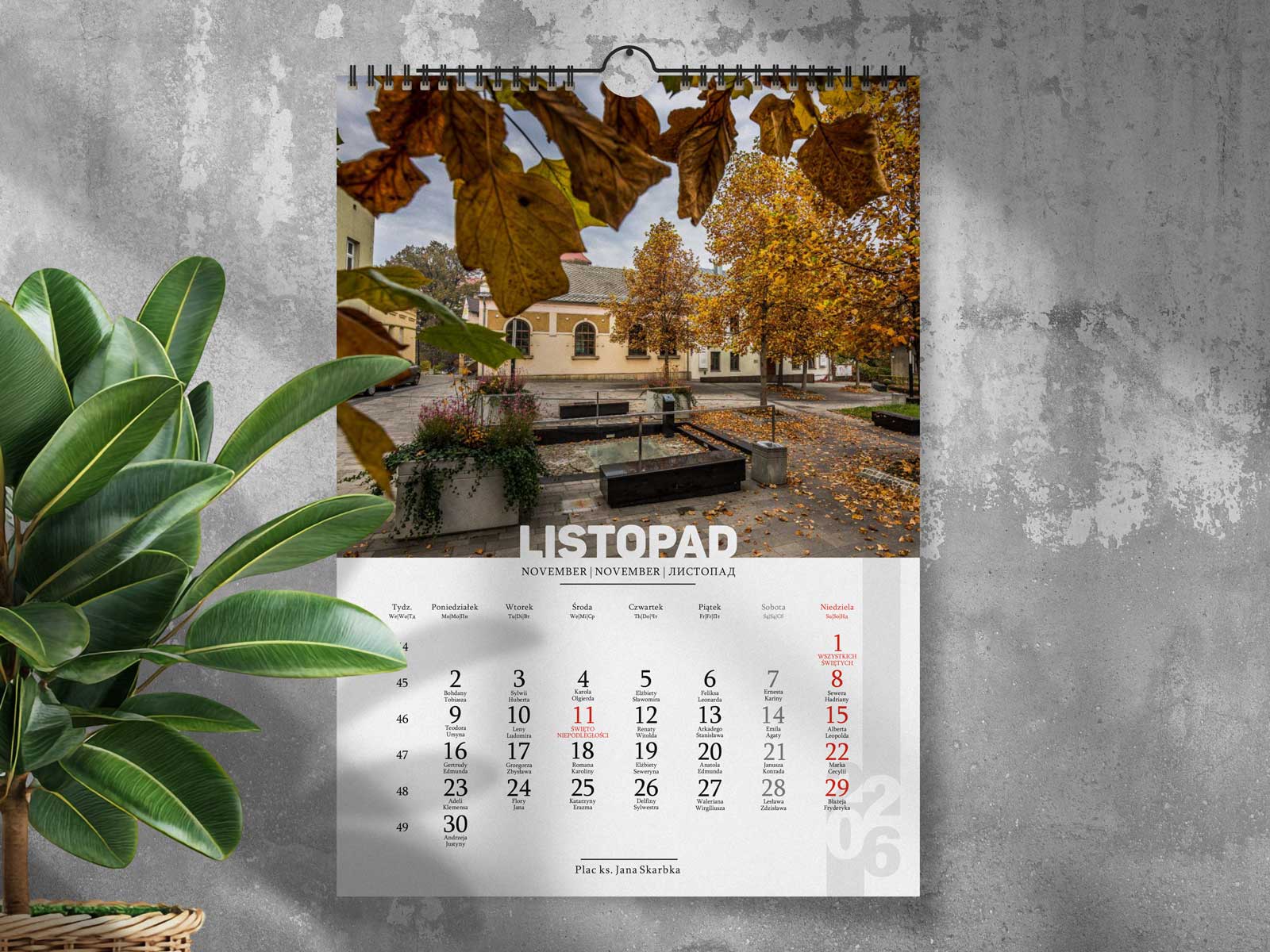 - Przejrzyste kalendarium - czytelne i spójne, z zaznaczonymi najważniejszymi świętami i dniami wolnymi od pracy.