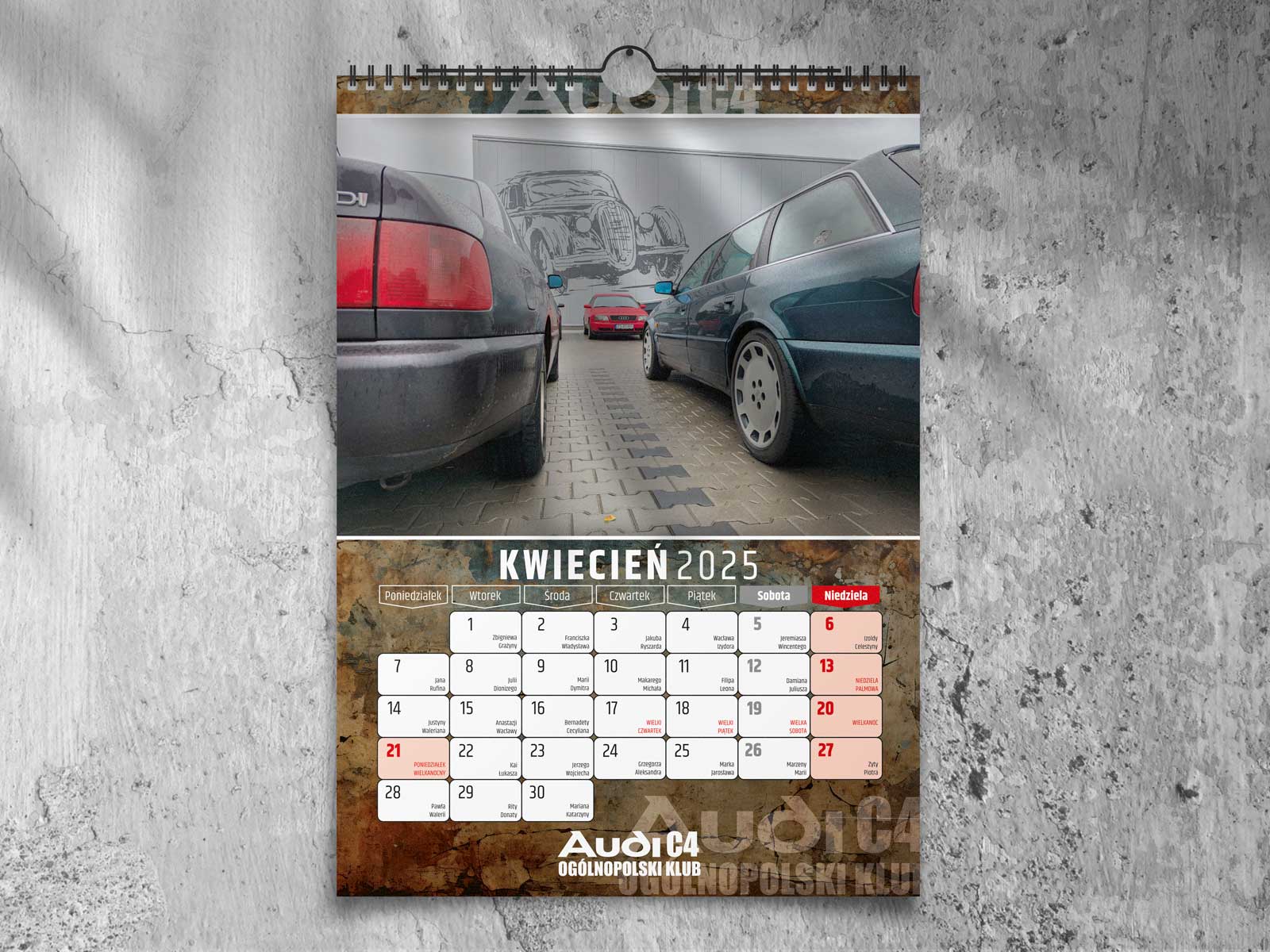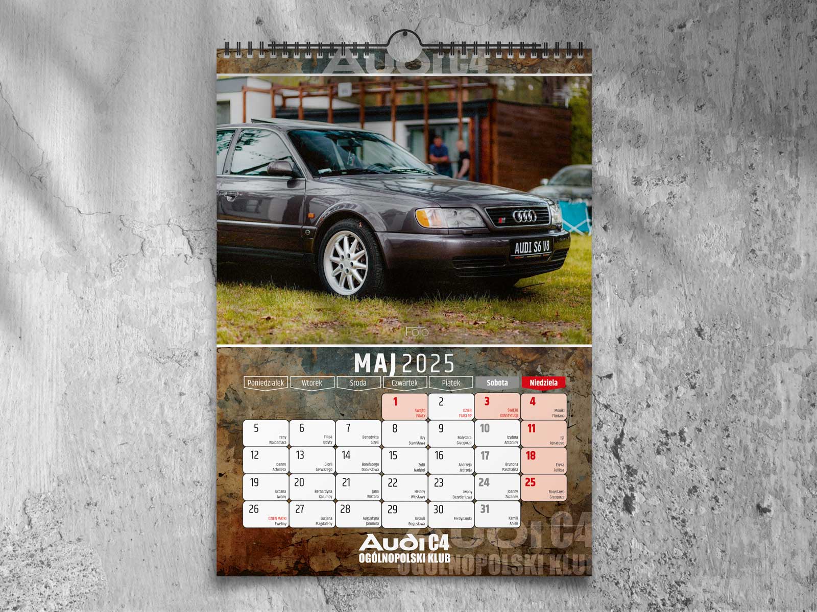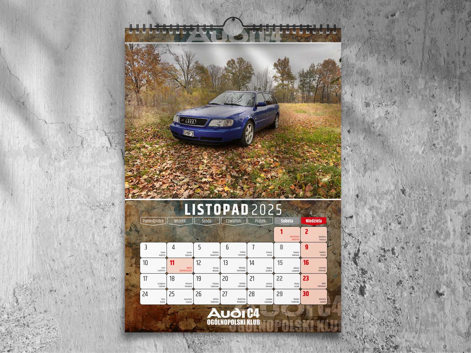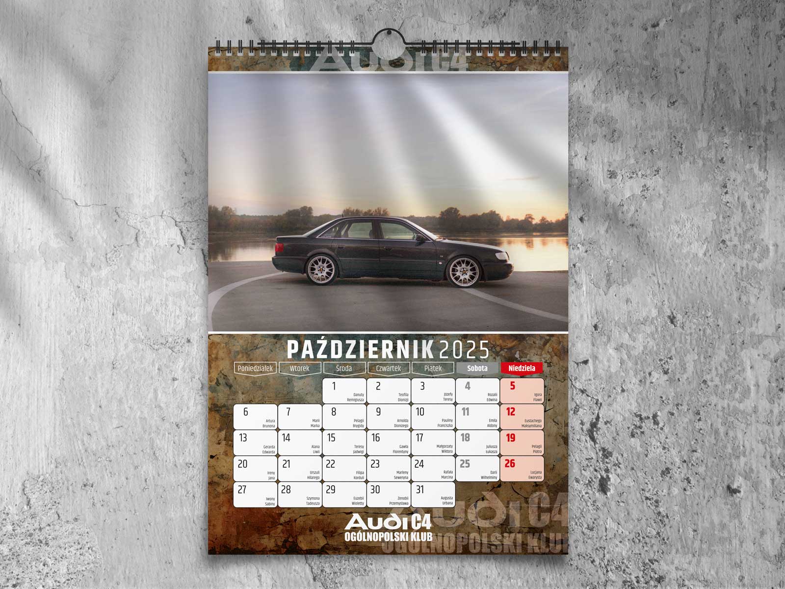 Kalendarz klubowy dla Ogólnopolskiego Klubu Audi C4 na 2025 rok. Kolorowe zdjęcia, wysokiej jakości druk i miejsce na zapiski.