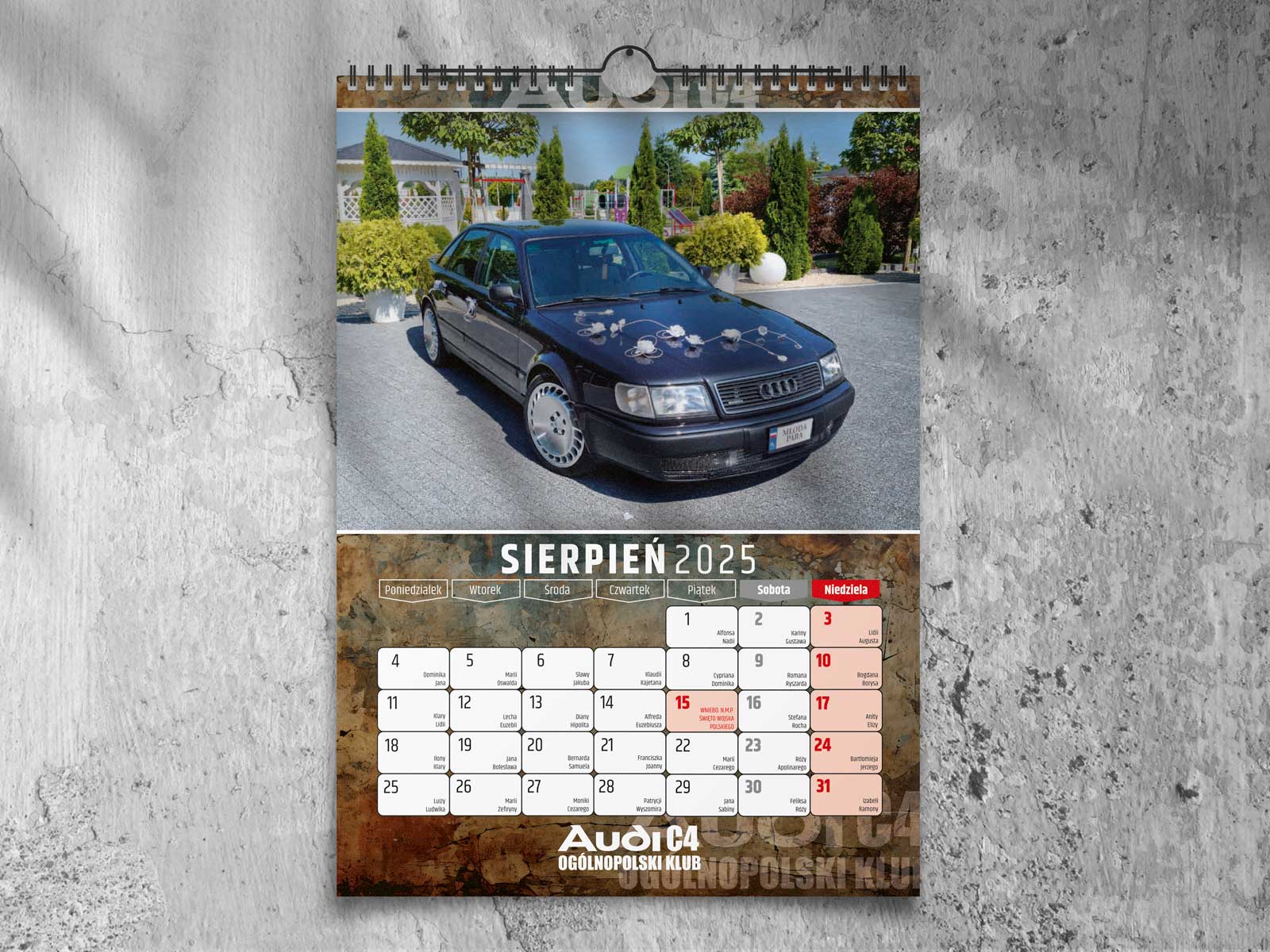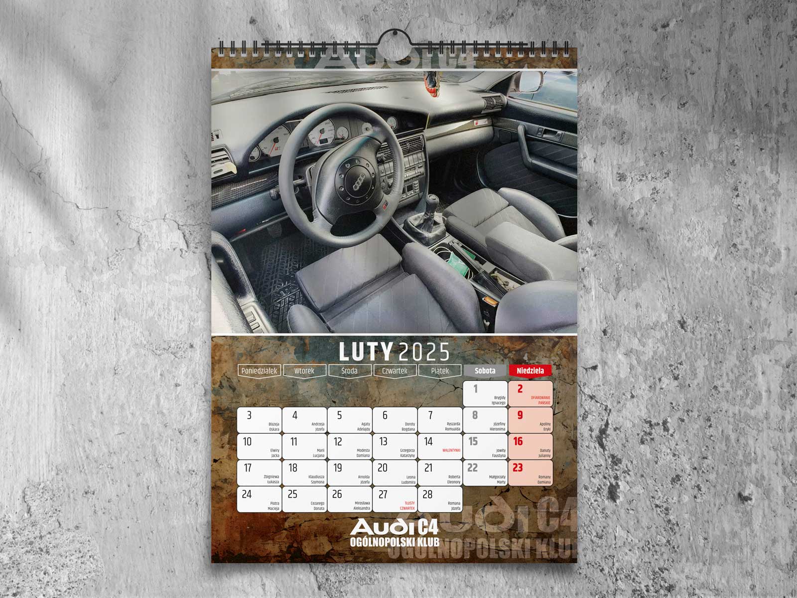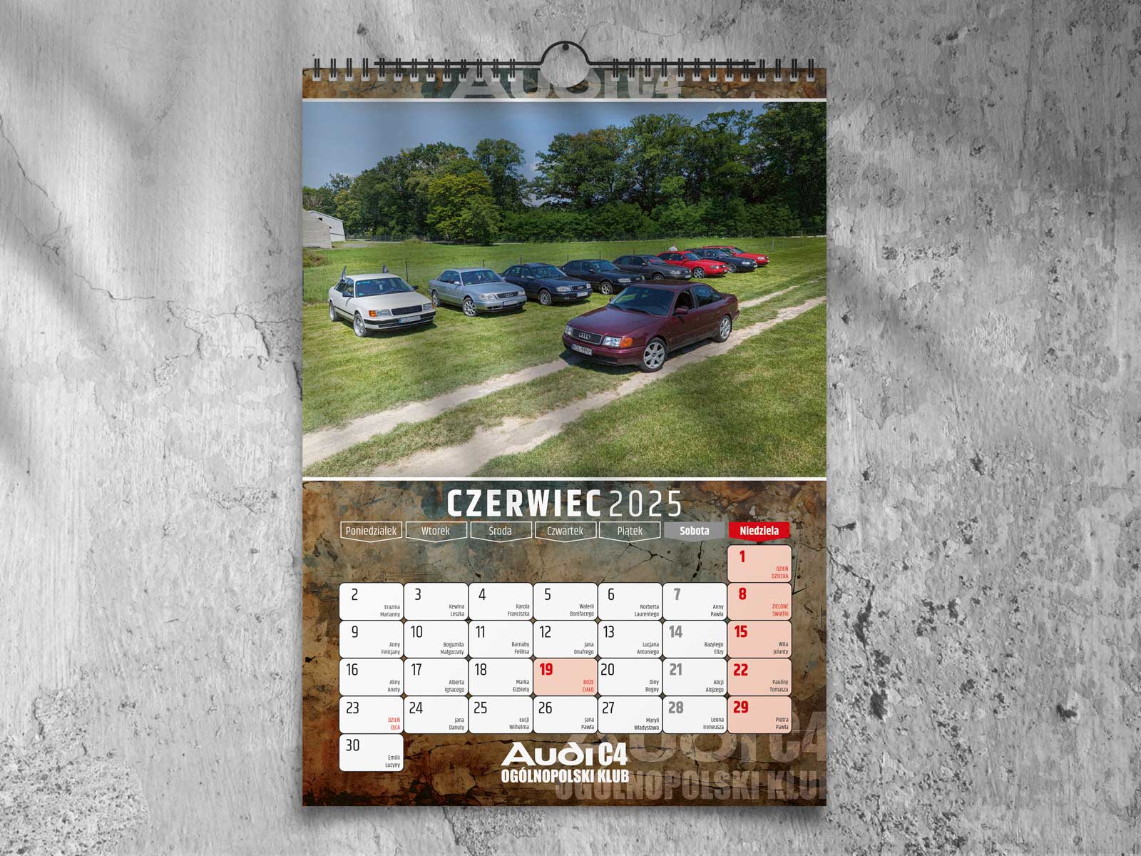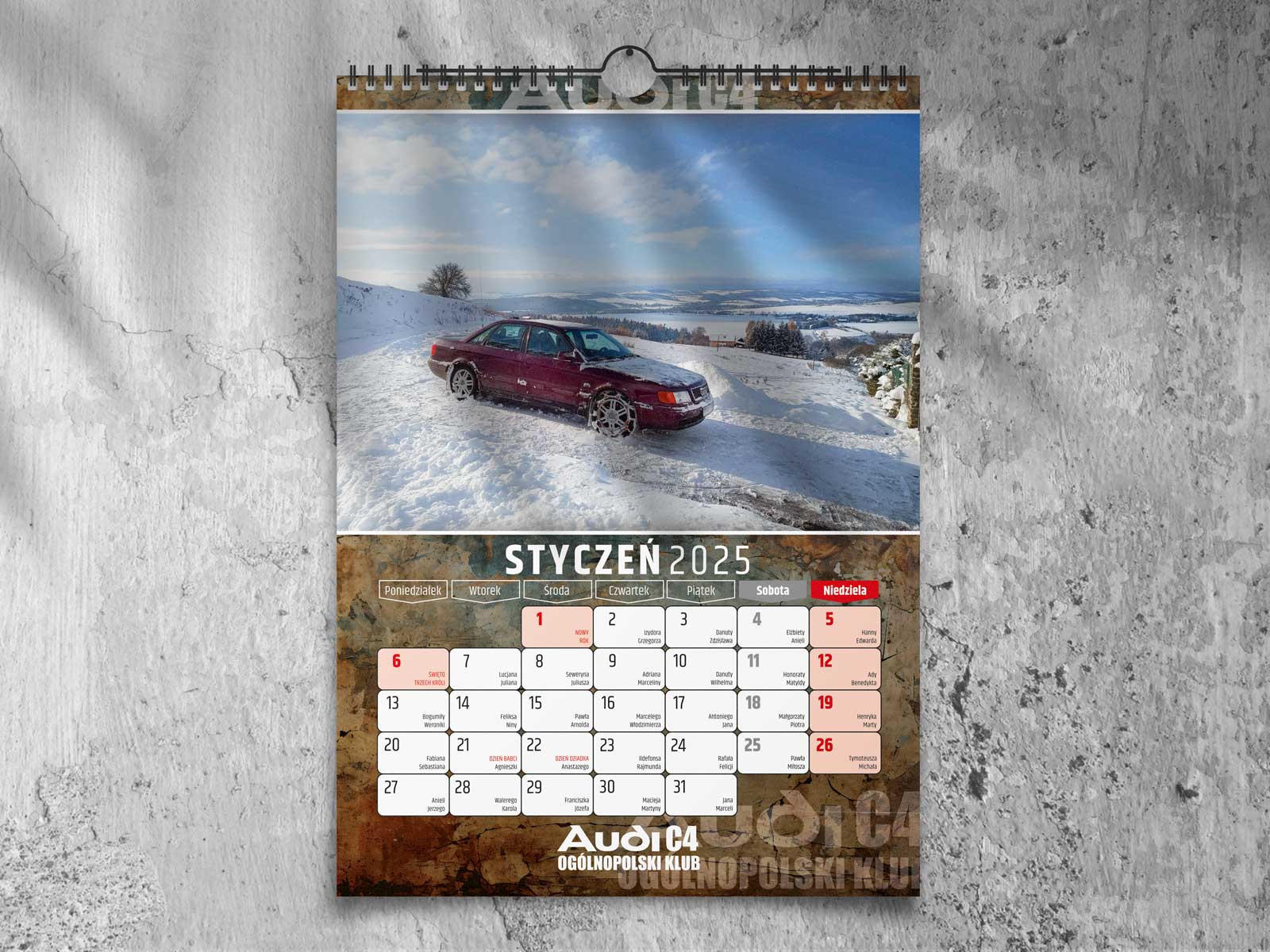 Kalendarz klubowy dla Ogólnopolskiego Klubu Audi C4 na 2025 rok. Kolorowe zdjęcia, wysokiej jakości druk i miejsce na zapiski.