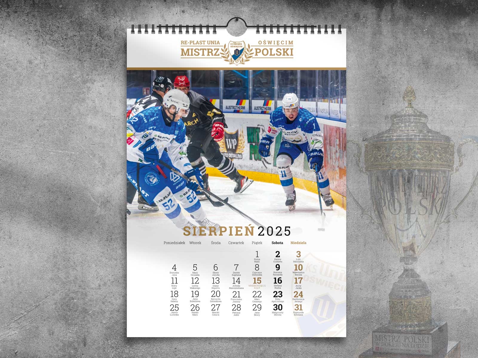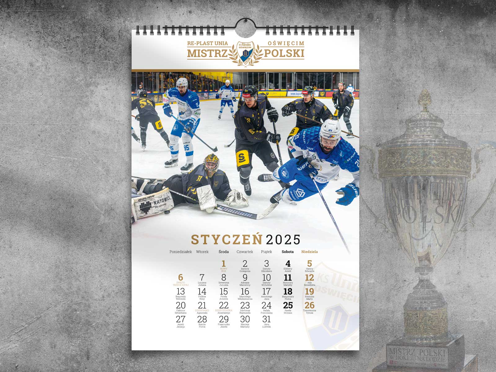 Pierwsze wydanie wykonanego przez nas kalendarza dla Mistrza Polski w hokeju na lodzie Re-Plast Unia Oświęcim. Oficjalny kalendarz na rok 2025 ozdobiony jest fantastycznymi zdjęciami Jarosława Fiedora wykonanymi podczas rozgrywanych meczy w obecnym sezonie.